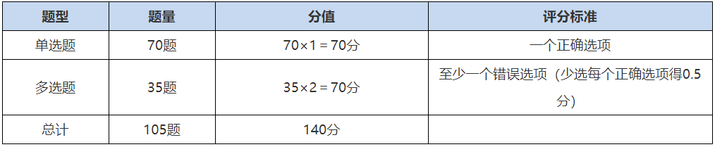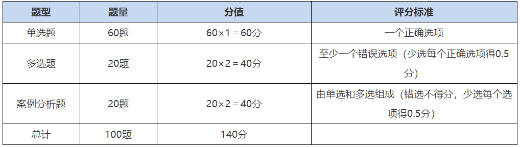 《专业知识和实务》考试题型题量、分值及评分标准: