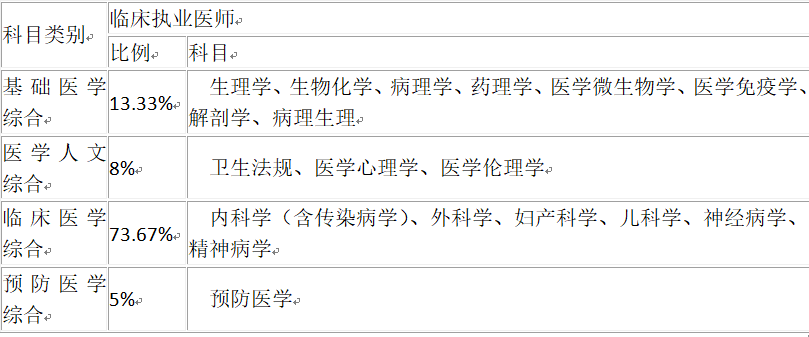 临床执业医师资格考试医学综合笔试测试内容、考试形式以原卫生部医师资格考试委员会审定颁布的《医师资格考试大纲》为依据。临床执业医师医学综合笔试考试方案及内容见下表