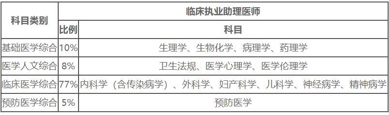医师资格考试医学综合笔试测试内容、考试形式以原卫生部医师资格考试委员会审定颁布的《医师资格考试大纲》为依据。临床执业助理医师医学综合笔试考试方案及内容见下表