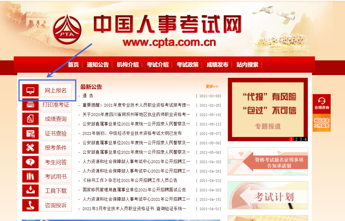经济师考试报名官网是中国人事考试网,报名入口在全国专业技术人员资格考试报名服务平台。新生需要先注册再登录,老生直接登录。