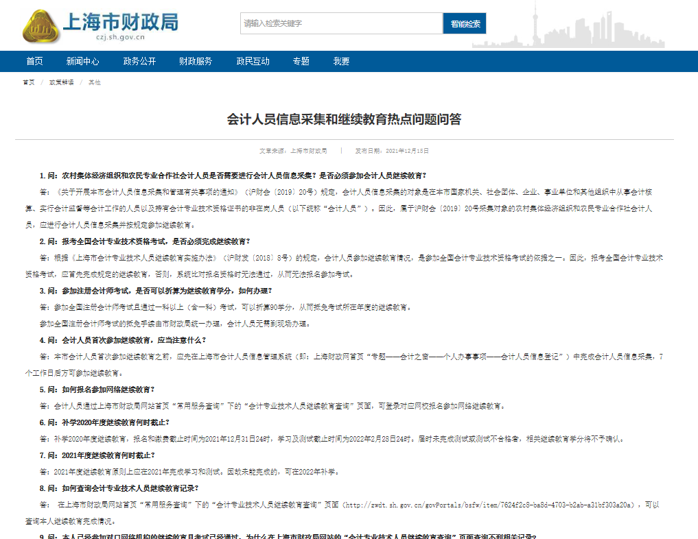 上海市财政局发布会计人员信息采集和继续教育热点问题问答,准备备考会计或已经在备考会计路上的童鞋们,一定要仔细阅读!