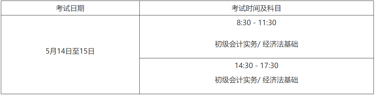 初级资格考试于2022年5月14日至15日。具体安排以准考证为准: