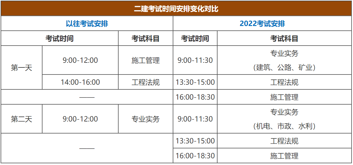 2022年二级建造师考试时长缩短,一天考三科!