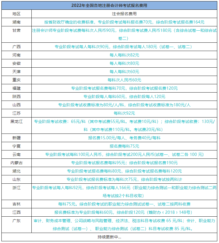 2022 年注册会计师全国统一考试报名简章中明确,报名费标准按照各省、自治区、直辖市价格主管部门、财政部门制定的相关规定执行。所以各个地区的注会报名费用略有不同,贡翔教育 为同学们整理了各考区报名费用汇总,快来了解一下吧~